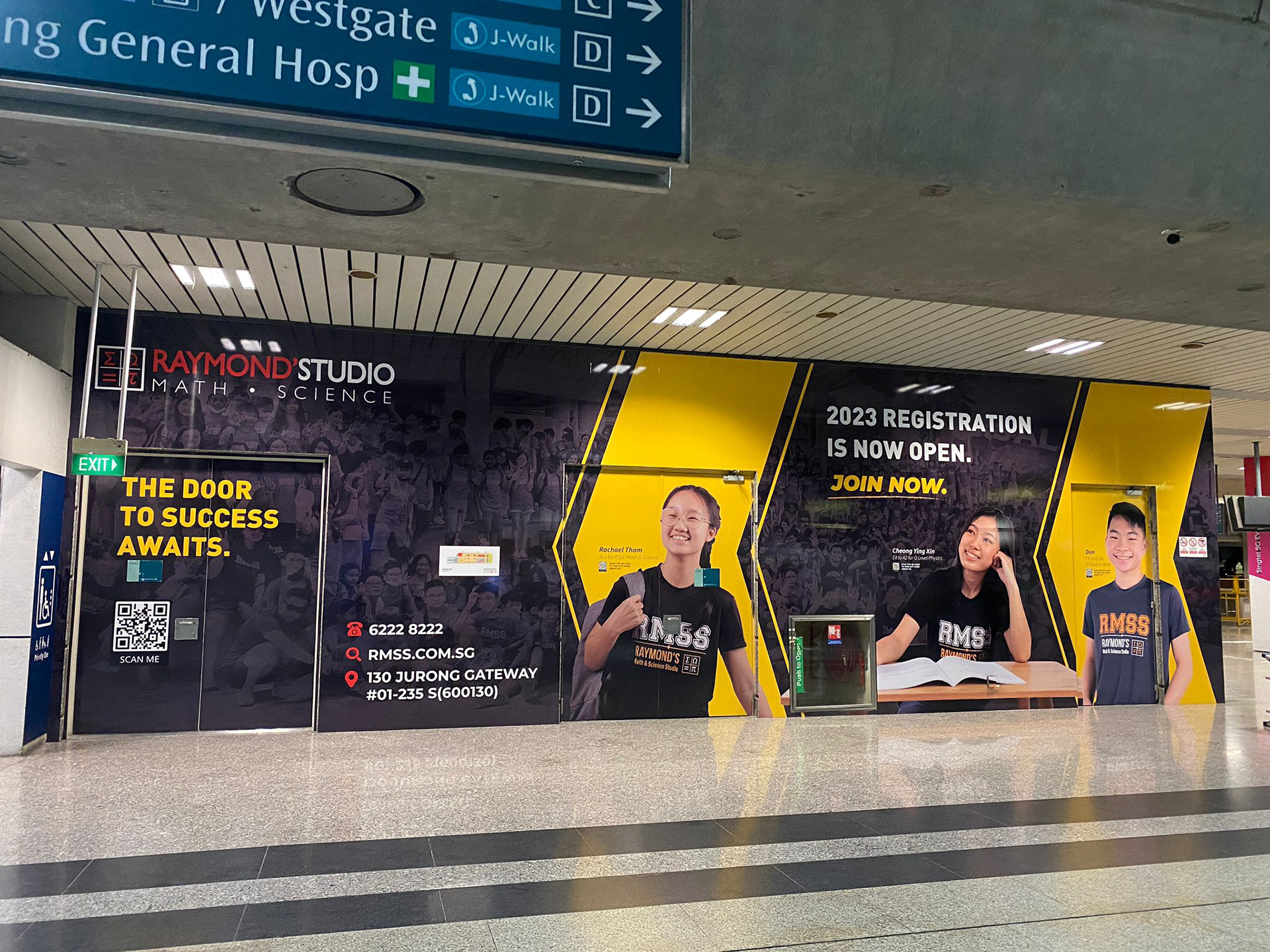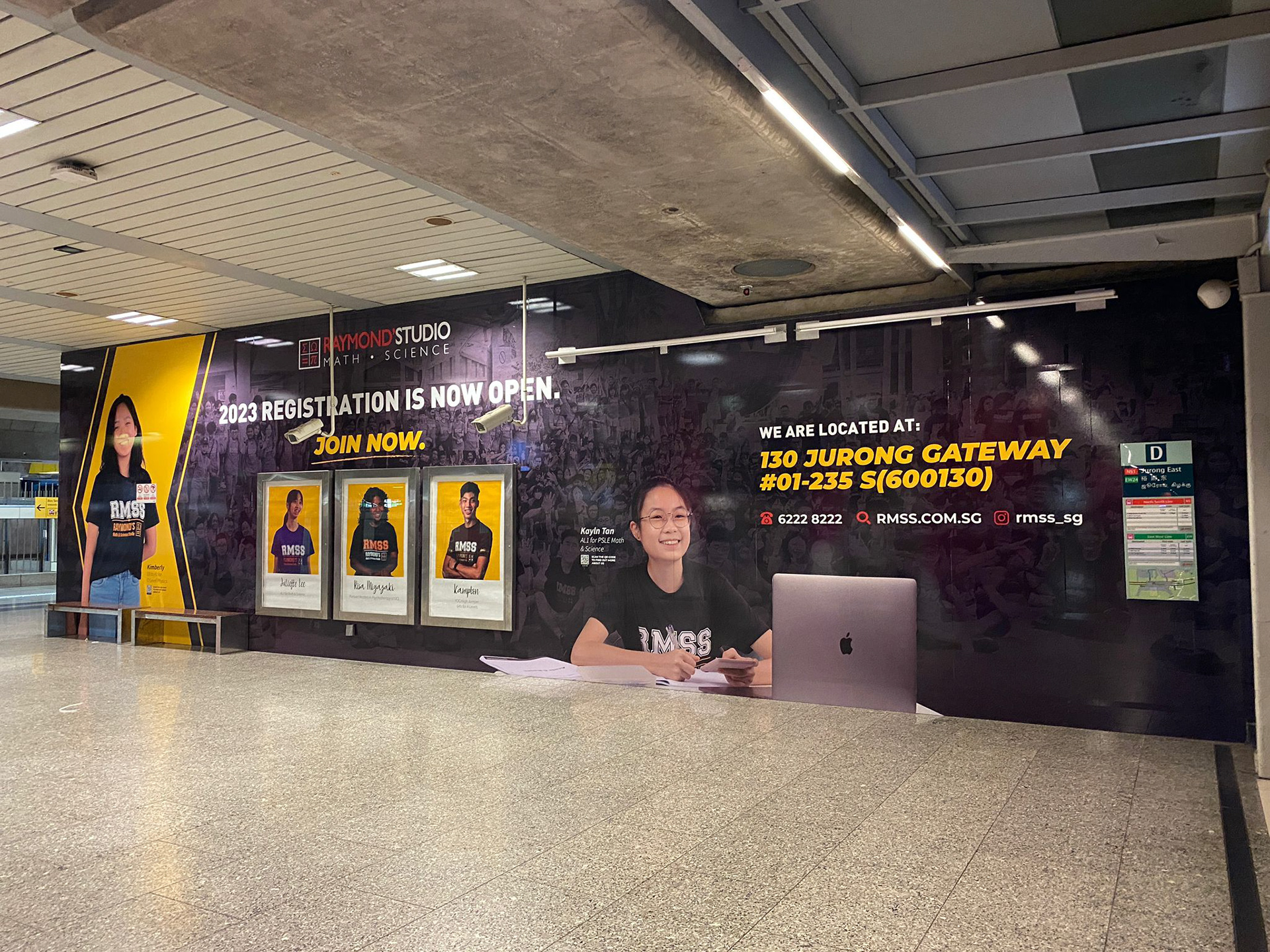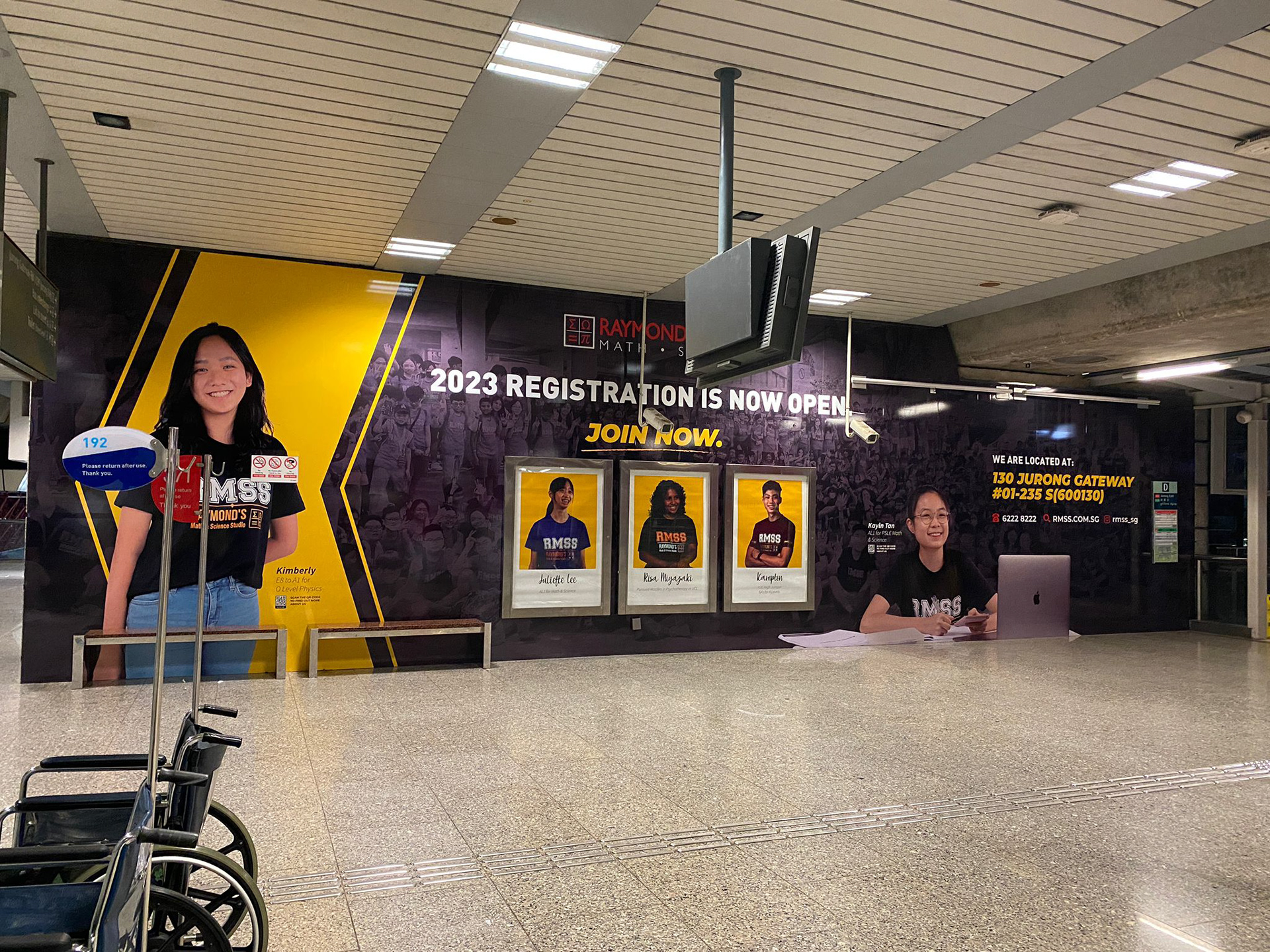 Advertisement on Wall 8 & 9 of Jurong MRT Station in preparation for 2023 Class Registration.